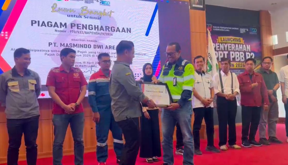 LUWU, SETARAKATA.com – PT Masmindo Dwi Area (MDA) kembali menerima penghargaan dari Pemerintah Kabupaten Luwu atas ketaatan dan kepatuhan dalam memenuhi kewajiban perpajakan daerah.